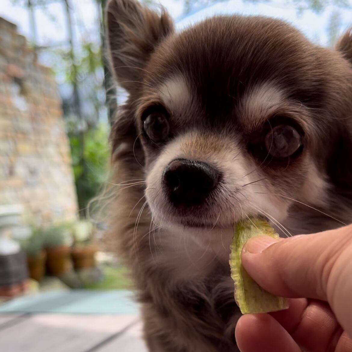 一般的な犬のおやつに比べてよく噛んで食べてくれます。